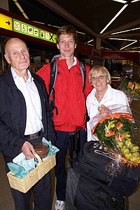 Nach fast einem Monat in Asien ist unser LG NORD-Olympionike gestern Abend reichlich verspätet um 22:30 Uhr mit den anderen Olympioniken aus Peking in Tegel angekommen. Abgeholt wurde er neben Carsten Köhrbrück dem BLV Teamleiter und Jan Keil als Leistungssportwart auch von einer Ehrendelegation des SC TF. Rüdiger George und Gundula George empfingen in mit einer hausgemachten und auf Wunsch angefertigten Schokoladencreme mit Whiskyschlagsahne, damit unser Hauptstadtläufer nach den 22h Reisestrapazen auch wieder schnell zu kräften kommt. Nun bleibt Carsten ein wenig Zeit die intensiven Eindrücke aus Peking zu verarbeiten und schon bald wird man sicher auf seiner Homepage spannende Details aus dem Olympischen Leben erfahren.