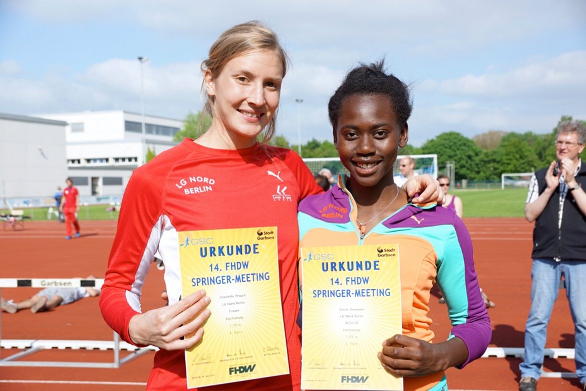 Beim 14. Internationalen FHDW Springermeeting in Garbsen schien endlich in dieser Freiluftsaison einmal die Sonne. Diese guten äußeren Bedingungen wusste Jossie Graumann (Jg. 94) gleich zu nutzen. Mit 1,81m stellte sie ihre persönliche Hochsprungleistung ein, zeigte dass nach oben noch viel Luft ist und hakte als erste Nordlerin in diesem Jahr die Norm für Rieti ab. Die Anlaufschwierigkeiten der letzten Wettkämpfe waren wie weggeblasen und nur bei 1,81m leistete sich zunächst zwei unnötige Fehlversuche. Im Gesamtfeld belegte Jossie damit den dritten Rang, fünfte wurde Charlotte Brauch (Jg. 94), die etwas unglücklich an 1,78m scheiterte und mit wiederum 1,75m auf Rang fünf sprang.